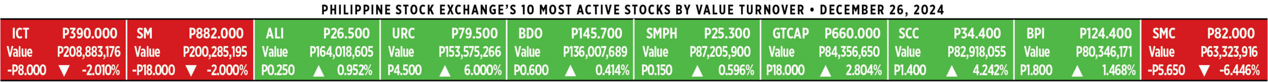 Here’s a quick glance at how PSEi stocks fared on Thursday, December 26, 2024.
